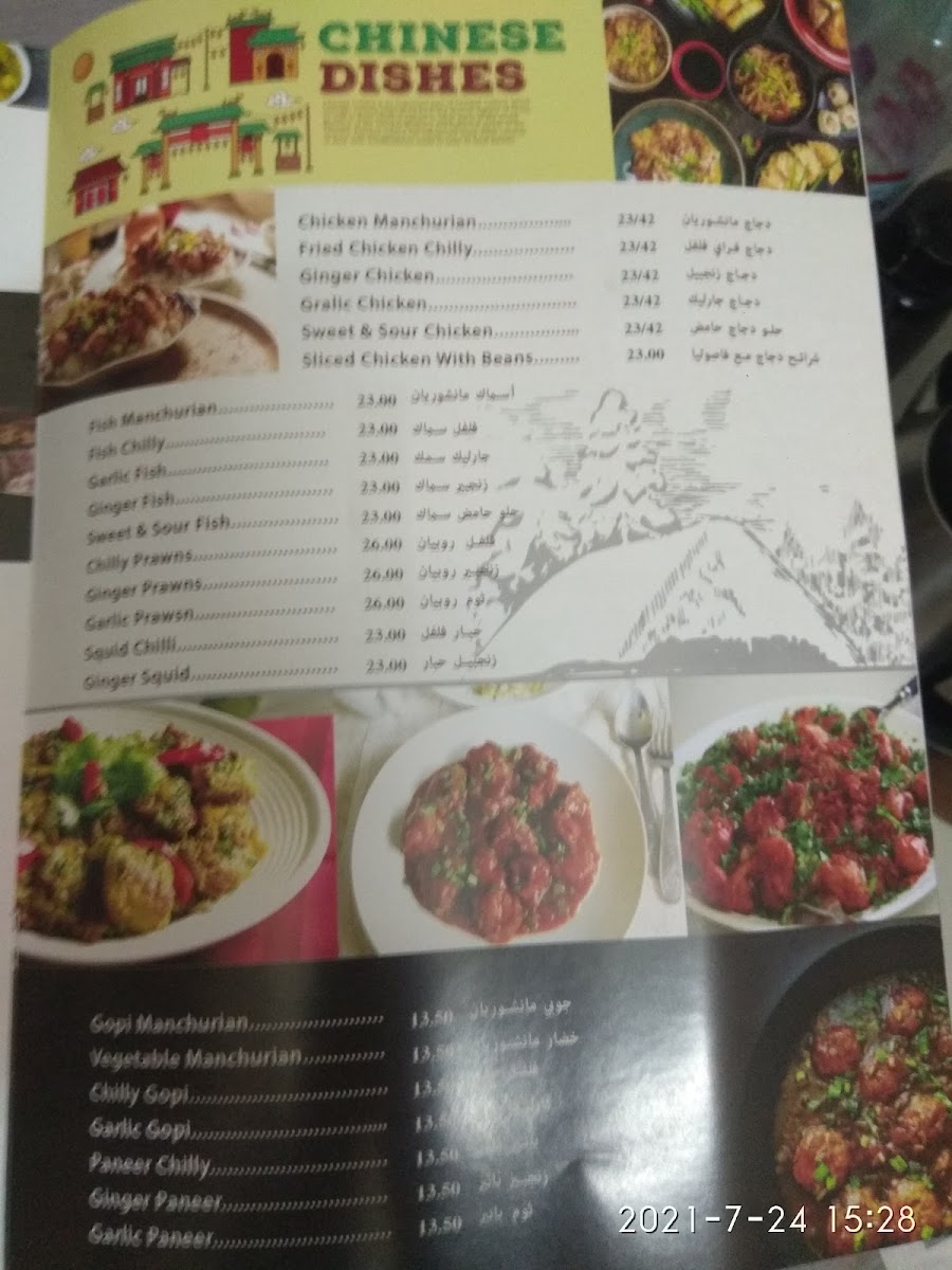 This selection is suitable for lunch or dinner, offering both quick orders and options for casual dining. The menu caters to those seeking flavorful traditional dishes alongside Indo-Chinese fusion items.